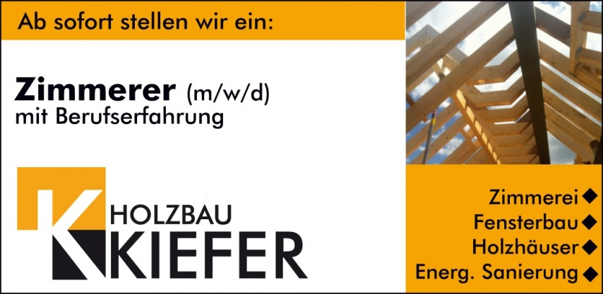 Zum nächstmöglichen Zeitpunkt bieten wir eine Stelle als Zimmerer (Vorarbeiter) an. Ihre Aufgaben: